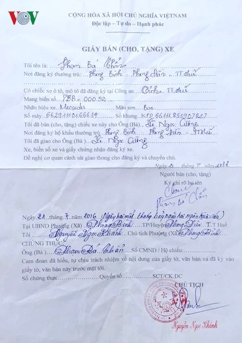 Ông Chuẩn đã bán chiết xe này cho tài xế Cường (người cũng tử vong trong vụ tai nạn) tuy nhiên chưa làm thủ tục sang tên.