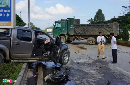 Trước đó, như báo Dân trí đã thông tin, chiều ngày 20/11, tại địa điểm trên xảy ra vụ tai nạn giao thông giữa xe ô tô bán tải mang BKS 29C-402.61 và xe ô tô tải mang BKS 36C-097.20, do anh Nguyễn Văn Bình (SN 1985, trú huyện Đông Sơn, tỉnh Thanh Hóa) điều khiển.