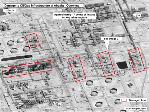 Cả Washington lẫn Arab Saudi cho rằng vụ tấn công trên đã huy động tới đến 20 máy bay không người lái và 10 tên lửa hành trình, khẳng định rằng độ chính xác và quy mô đòn đánh vượt xa khả năng của Houthi.