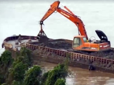 Thực hiện hợp đồng với ông Kiên, phía đối tác đã không đem bùn đất đi đổ tại khu vực bãi thải theo quy định, mà chở đến sát chân cầu Thanh Trì đổ xuống sông Hồng.