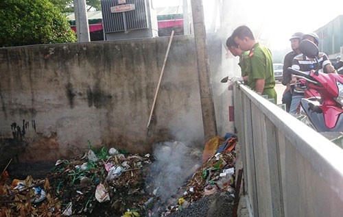 Chiều cùng ngày, các chiến sĩ công an mở rộng phạm vi khám nghiệm hiện trường. Một đoạn ao nhỏ bên nằm trong khuôn viên xưởng, cạnh mặt đường bê tông vào cửa phụ được 2 chiến sĩ đào bới.
