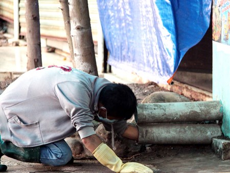 Trong bán kính trên 100 m quanh hiện trường, những bọc rác đều được cán bộ điều tra bới lên để tìm các nghi vật liên quan vụ án.