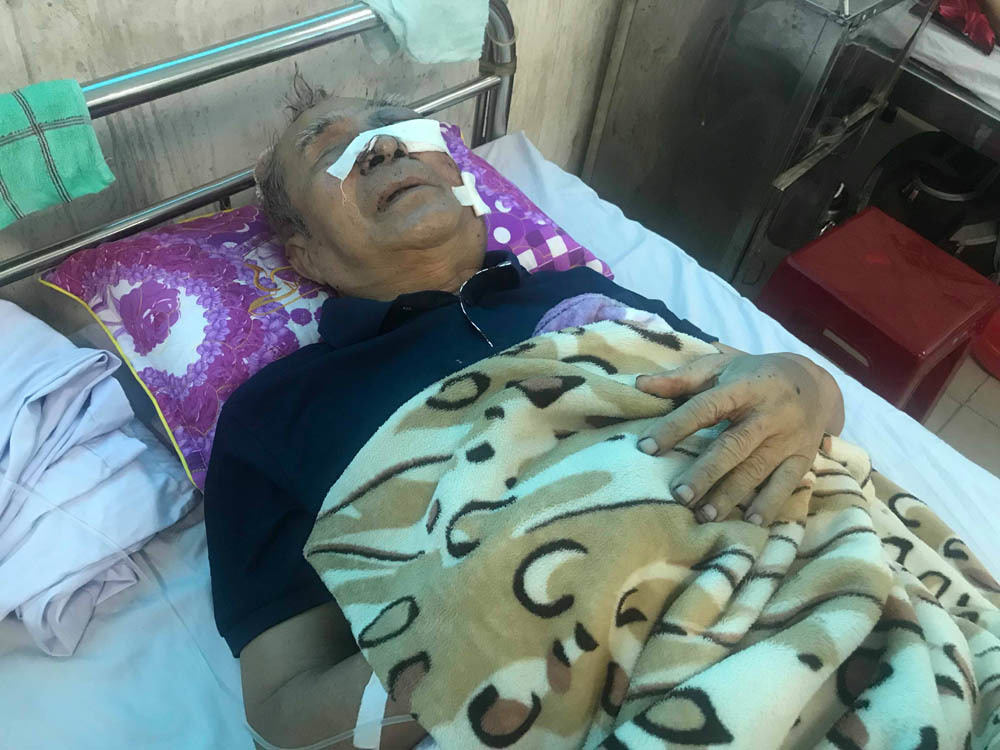 “Tôi như chết lặng khi chứng kiến cảnh vợ mình bị Ba đâm gục trên vũng máu, ngay sau đó tôi lại bị hắn cầm dao chém liên tiếp vào đầu đến bất tỉnh", cụ ông 79 tuổi may mắn thoát chết kể lại việc bị thầy cúng hàng xóm truy sát.
