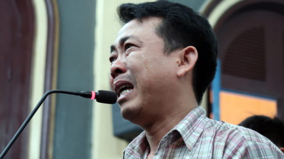 Bị cáo Nguyễn Minh Hùng khóc nức nở tại tòa. Ảnh: Sài Gòn Giải Phóng |