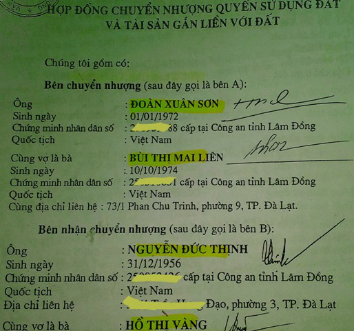 Hợp đồng bán căn nhà mà bà Liên đã thế chấp cho bà N có cả chữ ký của Giám đốc sở Tư pháp Lâm Đồng Đoàn Xuân Sơn. Ảnh: Người lao động |