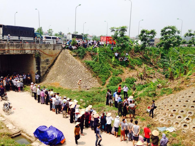 Hàng trăm người dân tập trung theo dõi vụ việc- Ảnh: báo Thanh niên |