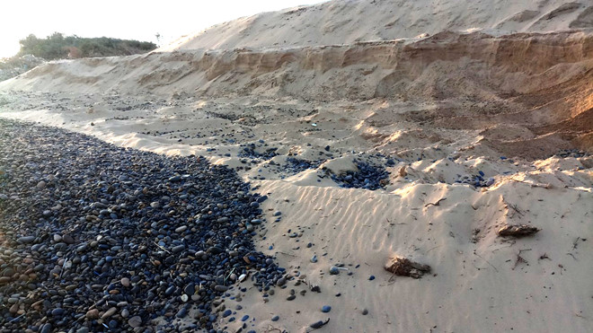 Bãi đá 7 màu bị lấp bởi đất cát do ông Cư ủi xuống - Ảnh: Tri thức trực tuyến. |