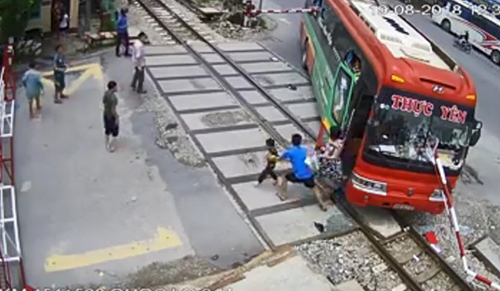 Trong tình thế nguy cấp, hai nhân viên gác chắn đã kịp ra tín hiệu cảnh báo cho tàu hàng dừng lại. Khi đoàn tàu gần đến nơi cũng là lúc xe khách vừa lùi ra khỏi đường ray nên không xảy ra va chạm.