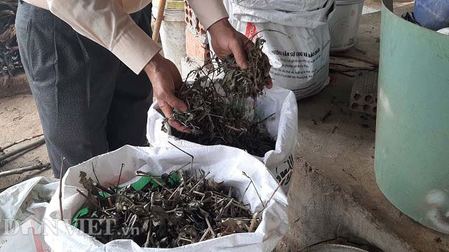 Những cây thuốc được anh Tú thu gom, sấy khô, nghiền thành bột và trộn đều với cám làm thức ăn cho gà, hoặc nấu thành nước cho gà uống. Ảnh: Dân việt |