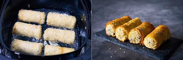 - Bước 4: Đặt bánh mì cuộn vào nồi chiên không dầu. Chiên ở 180 độ C trong khoảng 10 phút là được.
