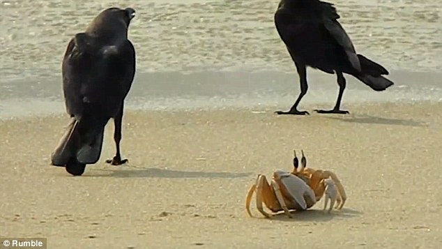 (ĐSPL) - Đây là khoảnh khắc vui nhộn khi một chú cua biển đã chiến thắng hai con quạ đói để không trở thành bữa tiệc của chúng.