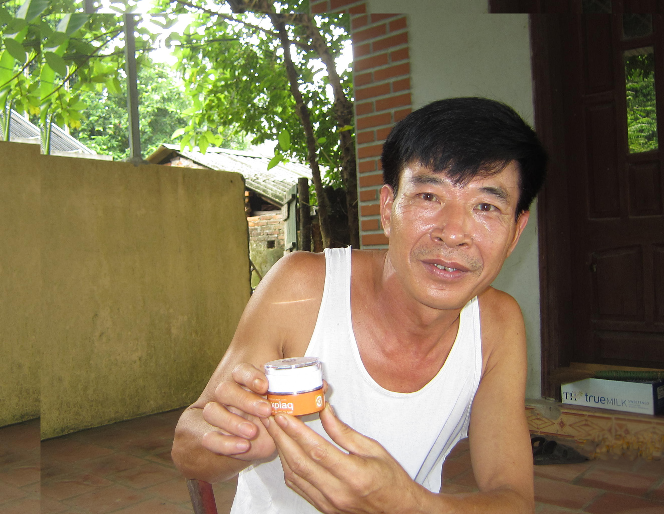 4. Bác Nguyễn Văn Việt (sinh năm 1954, ở Bãi Má, thôn Đức Thịnh, xã Đức Thắng, huyện Hiệp Hòa, tỉnh Bắc Giang) bị vẩy nến 15 năm. Nhờ sử dụng Kim Miễn Khang và Explaq, vẩy nến của bác đã được khống chế, vẩy da sạch hẳn, không còn tái phát.