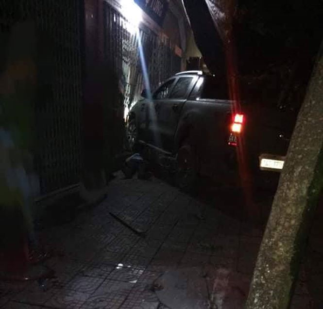 Chiếc ô tô chỉ dừng lại khi lao lên vỉa hè rồi húc đổ cửa 1 ngôi nhà ven đường. Đối tượng bỏ trốn ngay sau khi gây ra sự việc.