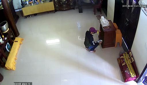 Hình ảnh đối tượng lấy tiền trong hòm công đức |