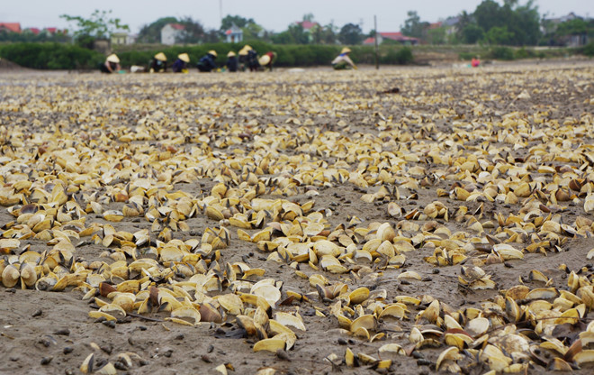 Gần 100 tấn ngao chết trắng đầm. Ảnh: Tri thức trực tuyến |