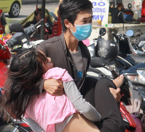 Công nhân ngất xỉu, phải nhập viện điều trị vào sáng 28/10. Ảnh: Hoài Văn |