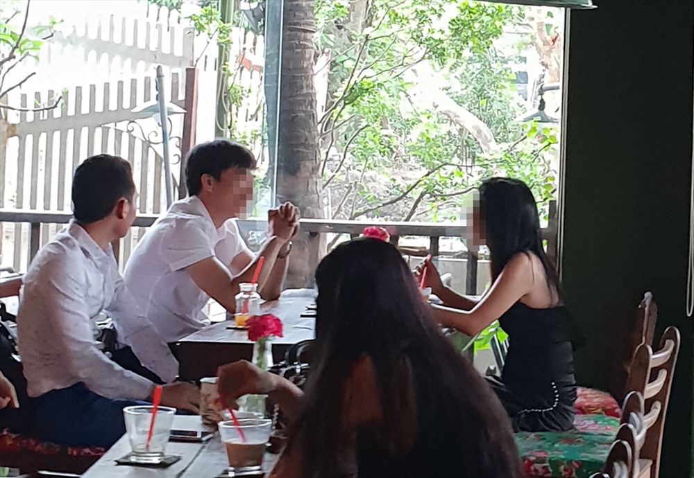 | Chân dung T (người chống tay) trong buổi trao đổi với PV. |