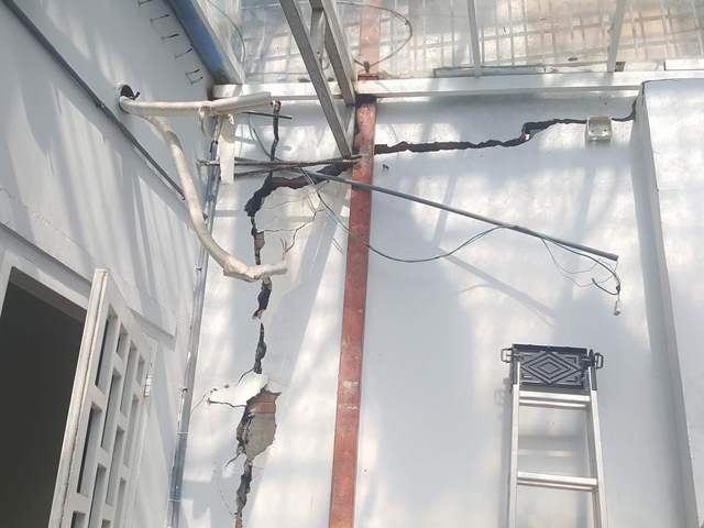 “Gia đình tôi có hơn 10 người trú ngụ, sợ nhà nứt có thể đổ vỡ gây nguy hiểm, mấy hôm nay, tôi phải mua xi măng về trám lại, nhưng rồi lại nứt ra”, ông Đài lo lắng.