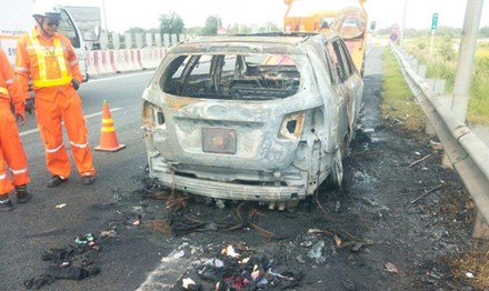 Sau khi sự việc xảy ra, nhân viên tuần tra của Công ty Cổ phần Dịch vụ Kỹ thuật Đường cao tốc Việt Nam - VECE đã có mặt tại hiện trường dập lửa.