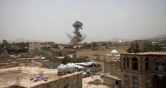 Khói bốc lên sau một cuộc tấn công ở Sanaa, Yemen. - Ảnh: Reuters |