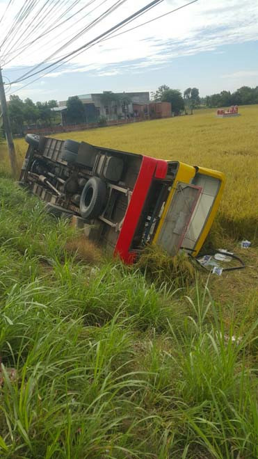 Phát hiện tình huống bất ngờ, tài xế Lê Trường Chinh buộc phải đánh lái xe buýt để tránh, do quá bất ngờ nên chiếc xe buýt bị lật xuống ruộng sâu.
