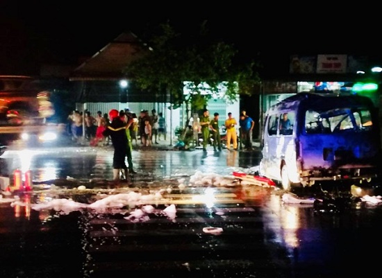 Khi đến đoạn đường cong thuộc khu phố Bàu Ké, thị trấn Tân Phú, huyện Đồng Phú, do chạy với tốc độ cao trong cơn mưa nặng hạt, lại vào khúc đường cong nên tài xế không làm chủ được tay lái, đâm thẳng vào dải phân cách cứng giữa đường.