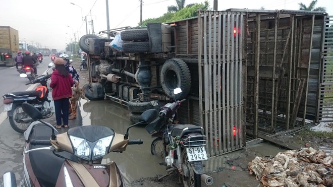 Số vịt nhốt trong xe bị dồn ứ gần 10 phút, sau đó cánh cửa sau bung ra làm gần 800 con vịt chết ngạt văng ra mặt lộ. Tài xế cùng chủ nuôi vịt chứng kiến tài sản bỗng chốc tiêu tan nên không đứng vững...