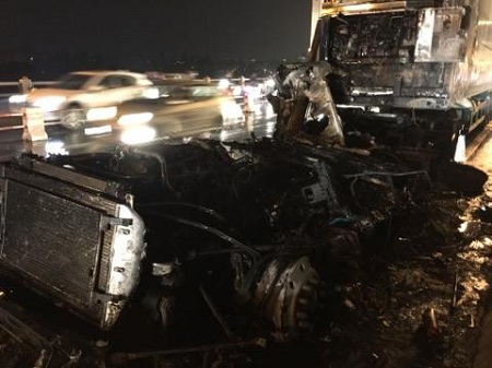 Chiếc xe Container bị thiêu rụi hoàn toàn. |