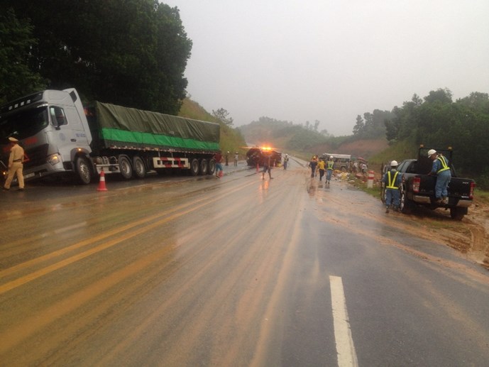 Hiện trường vụ tai nạn xảy ra trên đường cao tốc Nội Bài - Lào Cai. (Ảnh: Thanh Niên) |