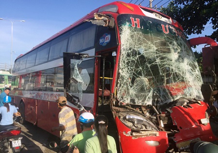 Theo báo VietnamNet, tại hiện trường, đầu xe khách bị hư hỏng nặng, kính chắn gió vỡ nát. Hàng loạt dải phân cách bằng bê tông bị cày nát, mắc kẹt dưới gầm xe.