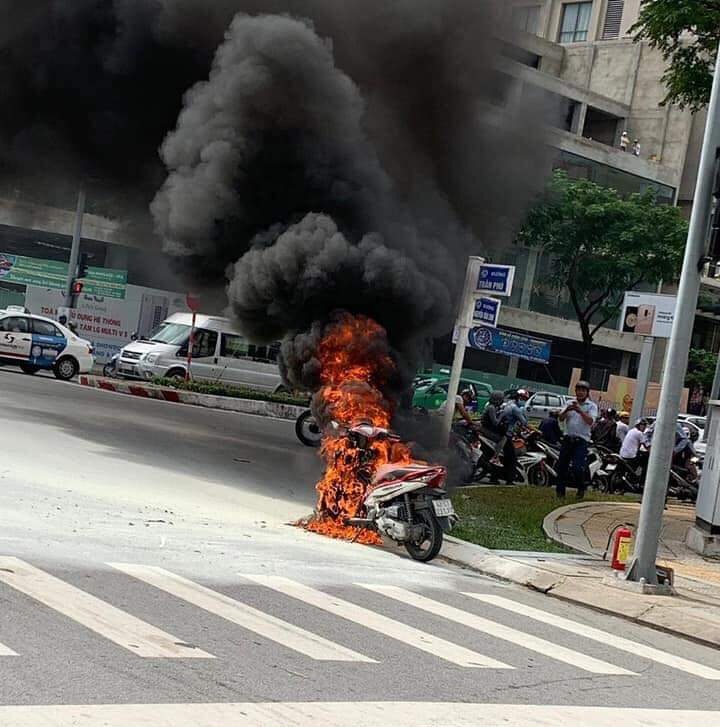 Vào thời điểm trên, chị Đặng Ngọc Phương U. (25 tuổi, ngụ quận Hải Châu, TP Đà Nẵng) điều khiển xe máy mang BKS: 43C1-231.37 trên đường Trần Phú hướng về cầu Rồng. Khi đến giao lộ Nguyễn Văn Linh, chiếc xe bỗng bốc cháy ngùn ngụt.
