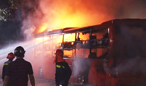 Trước đó, báo VnExpress đưa tin, tối 5/7, xe khách giường nằm 45 chỗ của nhà xe Kim Hoàng đi từ TP HCM về Trà Vinh. Khi xe vừa vào bến ở phường 8, TP Trà Vinh thì lửa bốc lên dữ dội từ sau. Hàng chục hành khách hoảng loạn tháo chạy khỏi xe.