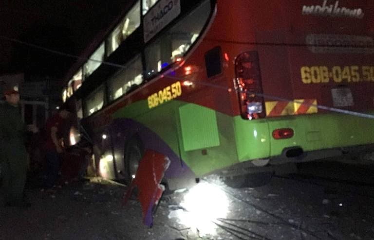 Vụ tai nạn khiến tài xế xe khách và một hành khách bị thương nặng.