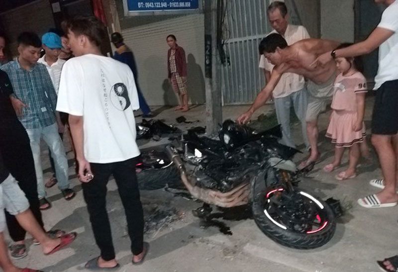 Theo báo Nghệ An, tại hiện trường xe thể thao vỡ nát, vành cong, phụ tùng vung vãi, nạn nhân chảy máu đầu trong mũ bảo hiểm nát bét, còn cột điện gãy gục. Nam thanh niên bị thương nặng phần đầu, được người dân đưa đi cấp cứu trong tình trạng nguy kịch; người đàn ông may mắn chỉ bị thương nhẹ.