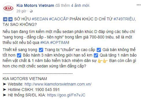Thông báo giảm giá trên trang fanpage của Kia Motor Việt Nam. Ảnh: Infonet |