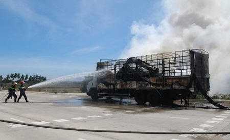 Báo Tuổi trẻ đưa tin, vào khoảng 9h30 sáng 1/6 xe tải chở cửa nhôm và máy xúc do tài xế Lê Quang Hưng (40 tuổi, trú huyện Tiên Lữ, Hưng Yên) điều khiển chạy hướng Bắc - Nam. Khi đến gần khu vực trạm thu phí Điện Bàn, thôn Viêm Tây 1, xã Điện Thắng Bắc, thị xã Điện Bàn, Quảng Nam thì hì chiếc xe bất ngờ bị bốc cháy từ phía sau.