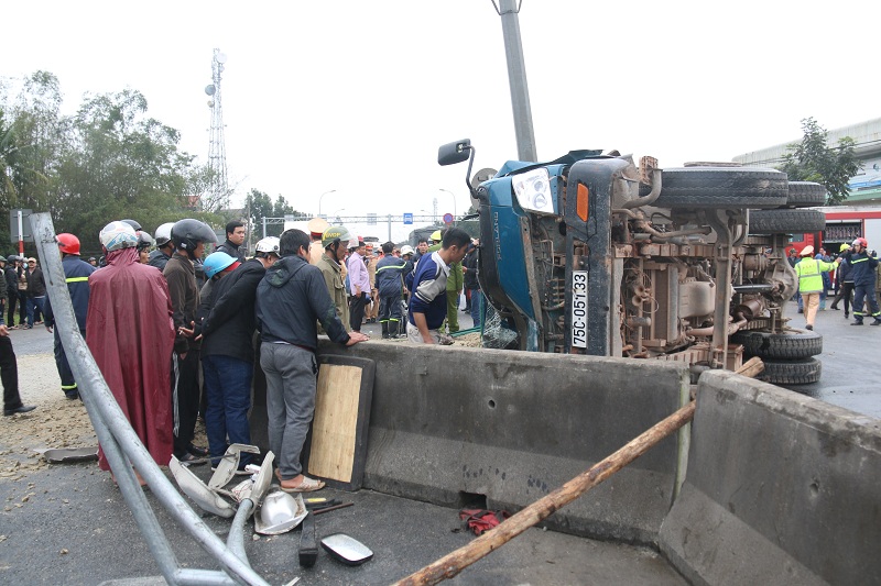 Cụ thể, vào thời điểm trên, xe tải BKS 75C-05133 (chưa xác định người điều khiển) chở vật liệu xây dựng từ đường Kim Sơn (thị trấn Tứ Hạ) lưu thông ra tuyến QL1A theo hướng Tứ Hạ - Phong Điền. Khi đang lưu thông, xe tải bất ngờ mất lái, đâm trực diện vào dải phân cách, lật nghiêng. Hậu quả, 3 người ngồi trên xe bị thương nặng, mắc kẹt trong cabin.