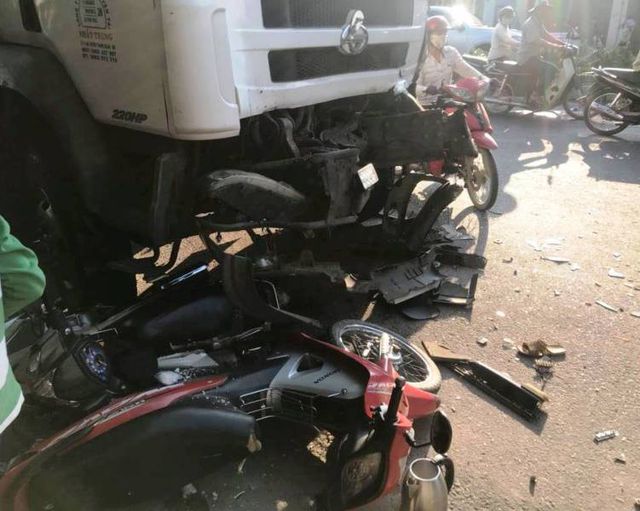 Ba xe máy bị xe tải tông nát, cuốn vào gầm mang BKS lần lượt là 77L1-... do Ng.Qu.Th. (30 tuổi, ở xã Phước An, H. Tuy Phước, Bình Định) cầm lái; 77G1-... do Ng.Th.V. (31 tuổi, ở xã Phước Thành, H. Tuy Phước) và 77G1-... do Ng.L.V. (34 tuổi, ở TT. Tuy Phước, H. Tuy Phước) điều khiển.