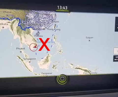 Theo đại diện của Tổng cục Hải quan, chiếc xe Volkswagen Touareg có bản đồ "đường lưỡi bò" này được một khách xem xe ở triển lãm ôtô Việt Nam phát hiện có bản đồ đường lưỡi bò trong ứng dụng điều hướng vào ngày 27/10.