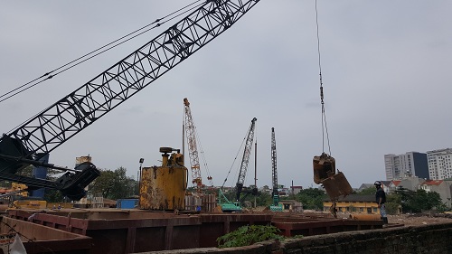 Dự án chung ở phố Minh Khai đã bị UBND phường Vĩnh Tuy ra quyết định đình chỉ thi công do vi phạm trật tự xây dựng đô thị không có giấy phép xây dựng nhưng trong ngày 2.11, máy móc tại đây vẫn hoạt động rầm rộ.