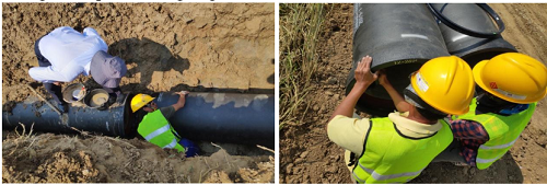 Với cách lắp đặt đơn giản, sau khi được cán bộ Xinxing giải thích và thị phạm tỉ mỉ những kỹ năng lắp đặt gioăng cao su cũng như các bước để nối ống, cán bộ thi công của Thái Lan đã thao tác thuần thục.