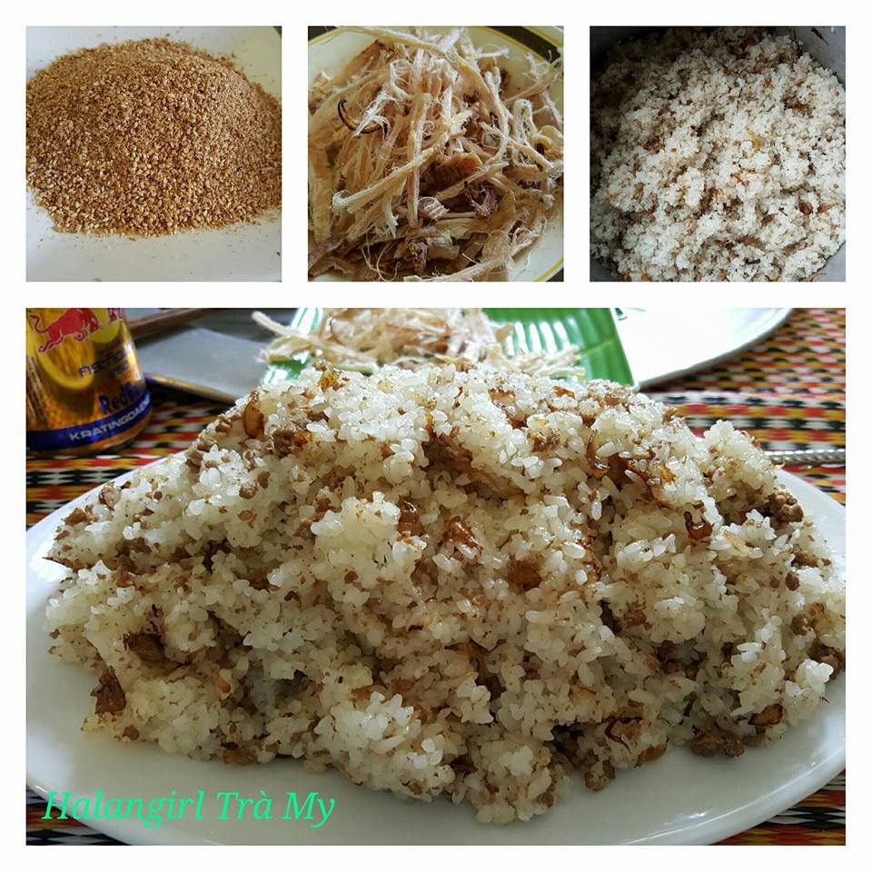- Khi xôi chín, các bạn tiến hành trộn xôi với thịt theo 3 cách: