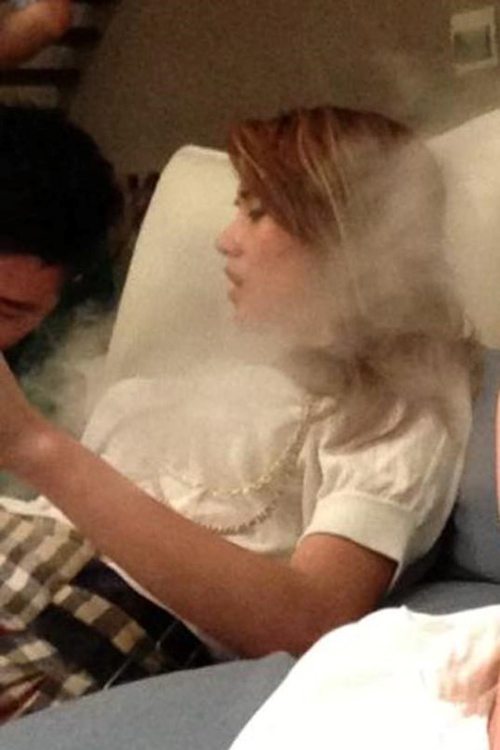 Võ Hoàng Yến đang "phê" trong khói thuốc. |