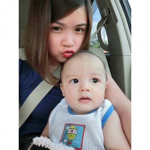 Ngắm khuôn mặt trẻ măng và những hành động nhắng nhít của bà mẹ trẻ như học sinh cấp hai.