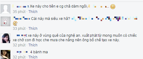 Tuy nhiên, bên cạnh đó cũng có một số facebooker cho rằng “Khuyến khích sáng tạo thật nhưng điều khiển xe tự chế mà chưa qua kiểm tra thì nguy hiểm lắm”.