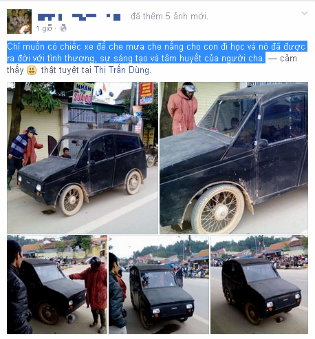 Nguyen Thanh Trung viết: “Chỉ muốn có chiếc xe để che mưa, che nắng cho con đi học và nó đã được ra đời với tình thương, sự sáng tạo và tâm huyết của người cha”.
