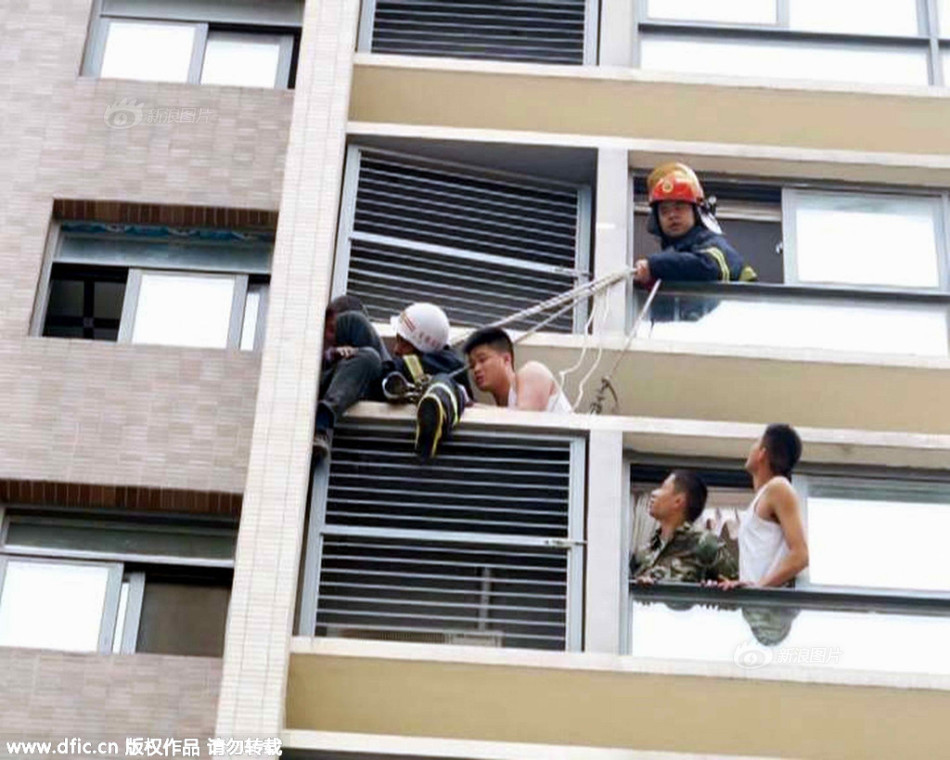 Trưa 10/5, ở thành phố Vu Hồ, tỉnh An Huy, cơ quan cứu hộ nhận được tin báo cần giải cứu một cậu bé đứng ngoài cửa sổ một căn hộ chung cư ở tầng 10. Khi nhân viên cứu hộ đến nơi, một cậu bé chừng hơn 10 tuổi đang mắc kẹt ở giữa tầng 10 và tầng 11 của tòa nhà. Sau đó cậu bé này khóc và thân thể có xu hướng rơi xuống phía dưới. Hai nhân viên cứu hộ có kinh nghiệm đã dùng dây an toàn tiếp cận để ứng cứu.