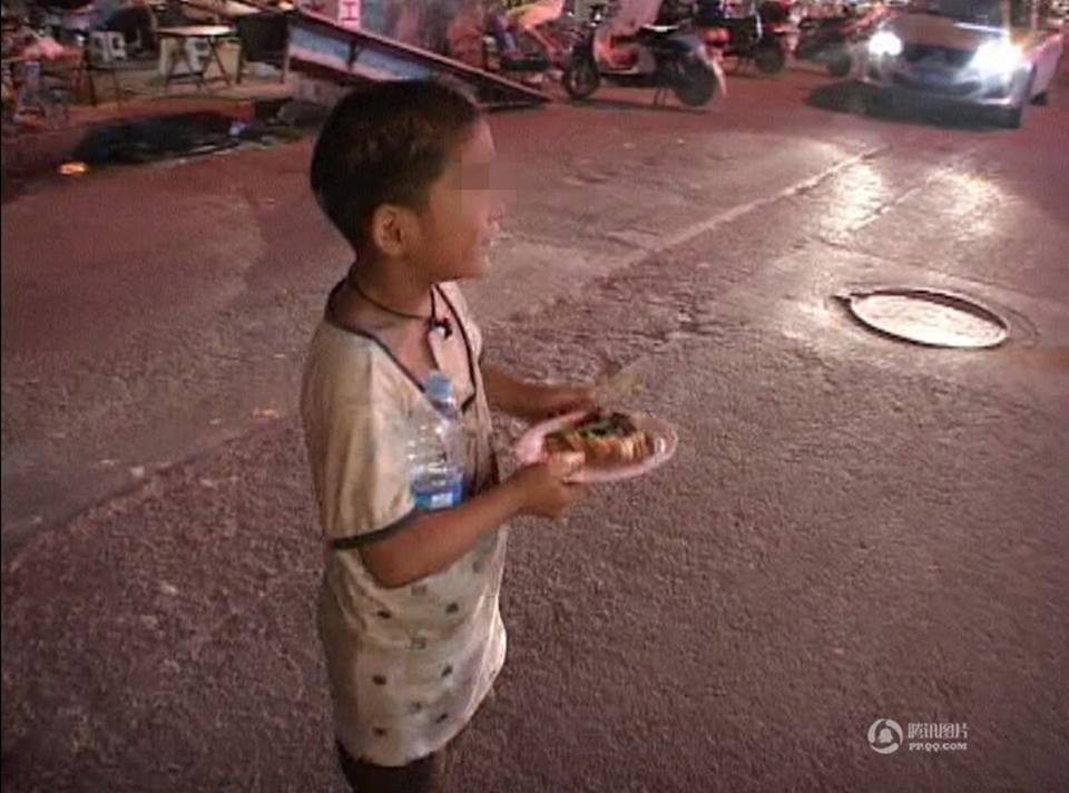 Một số chủ quán ăn đêm gần đó thương cảm hoàn cảnh của em nên đã cho em một đĩa thức ăn và chai nước sạch để em có thể xua đi cái đói nhất thời. Nhưng nhận được đồ ăn mà em bé này chỉ gật đầu không hề nói một tiếng nào, mọi người đều cho rằng cậu bé này không biết nói.