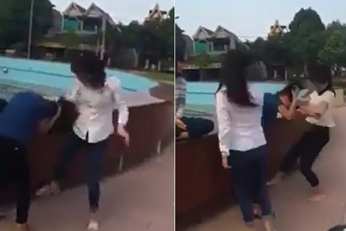 Một nữ sinh phấn khích đứng ngoài cổ vũ, "Đánh trả đi, đánh trả mới vui. Không thấy phản kháng nhỉ. Nhanh lên không máy hết pin". Trong khi, một cô gái khác ngồi khoanh chân, dửng dưng nghịch điện thoại, không một lời can ngăn.