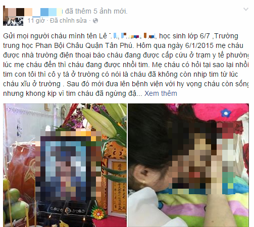 Câu chuyện đau lòng về sự ra đi bất thường của em học sinh chỉ mới 11 tuổi đang được chia sẻ trên trang cá nhân trên facebook khiến cộng đồng mạng hết sức bức xúc.
